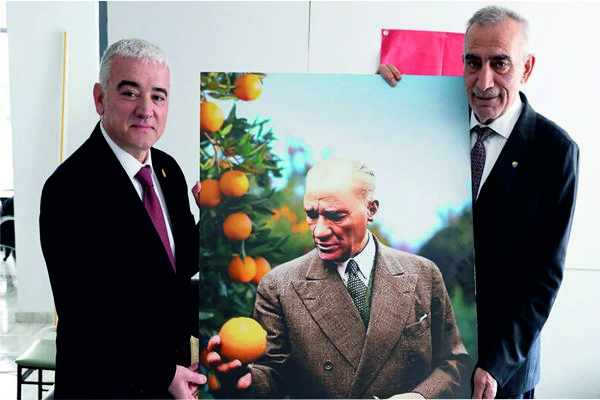 Ziyaretin sonunda Başkan Yücel Bayram, günün anısına Kurtul Çakın’a çok özel bir hediye takdim etti. Bayram, Cumhuriyetimizin Kurucusu Gazi Mustafa Kemal Atatürk’ün Mersin ziyareti esnasında bir portakal bahçesinde portakal soyarken çekilmiş büyük boy fotoğrafını ÇGC yönetimine armağan etti.